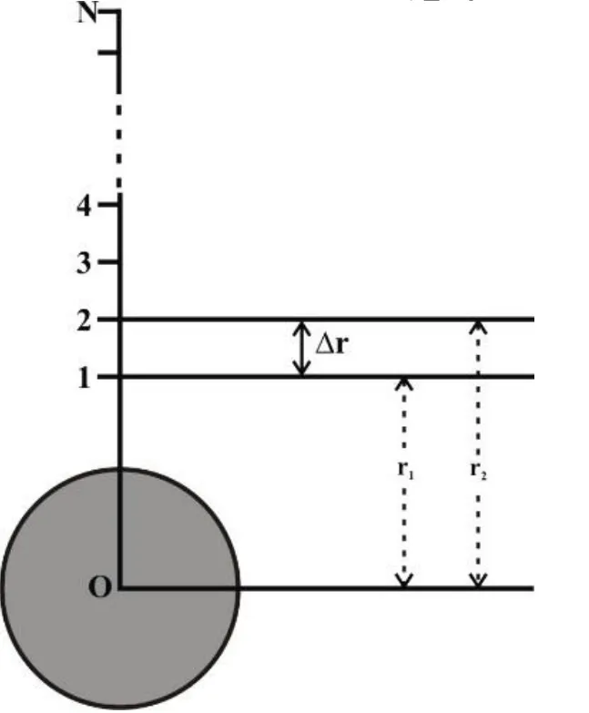 Let's calculate the work done, W1→2, as the mass moves a small distance from r1 to r2. The change in distance is . The gravitational force is not constant over this interval, so we use an average position for the force calculation.