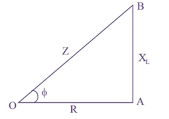 - Impedance Triangle: A right-angled triangle with sides R, XL, and Z.